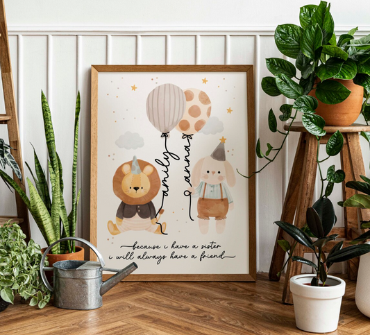 Custom Sisters Shared Room Posters | Lion and Bunny Best Friends