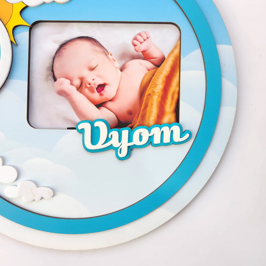 HOT AIR BALLOON THEME NAME SIGN WITH PHOTO - BLUE