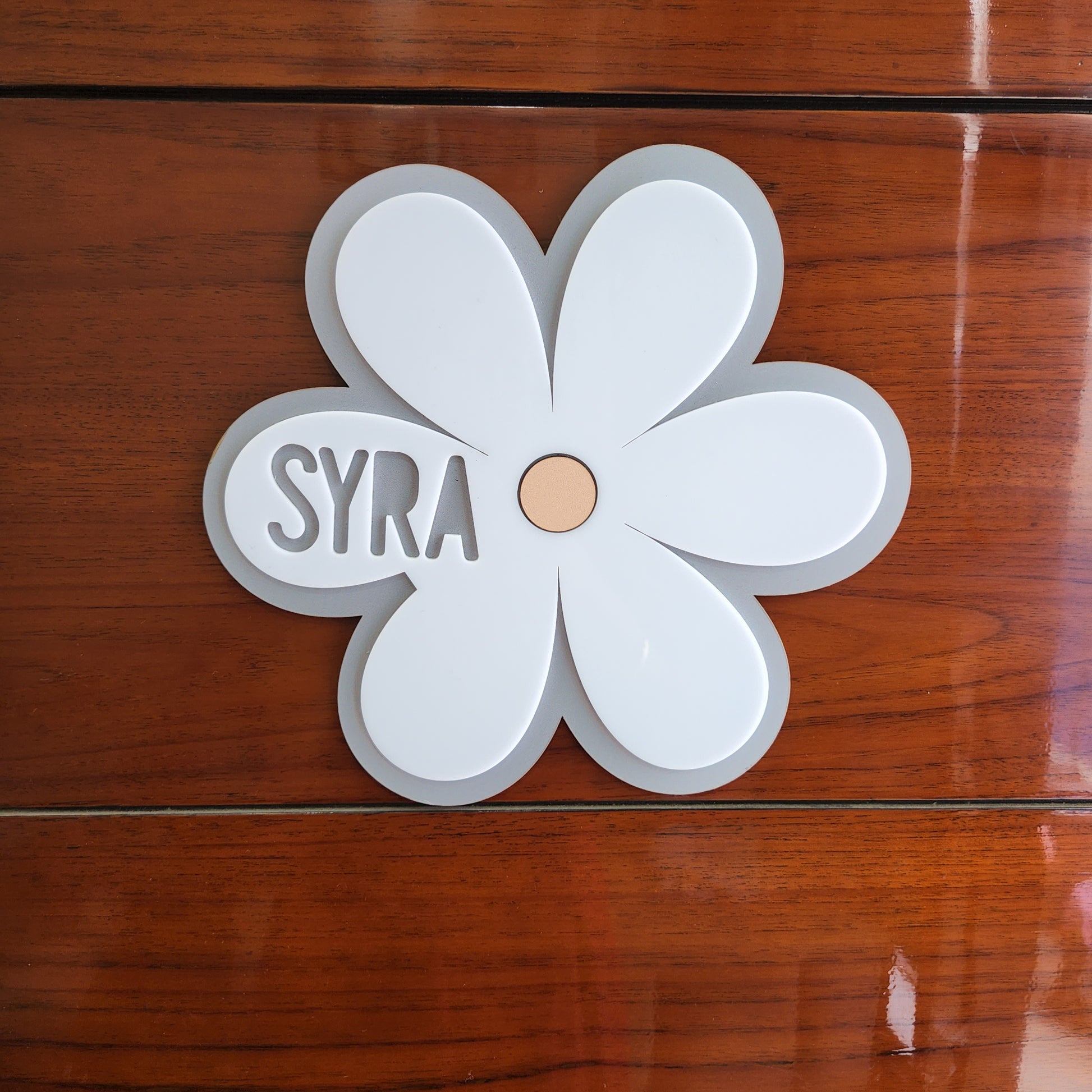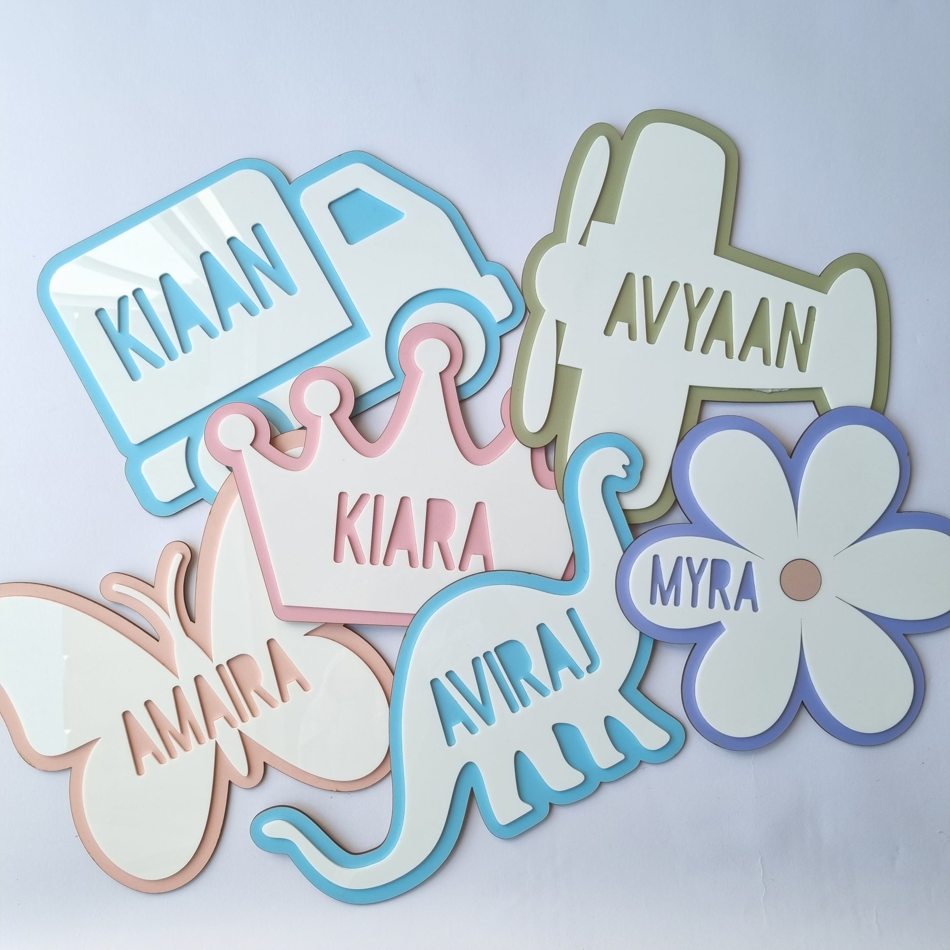 Add perfect touch to your little ones bedroom / nursery with our double layered acrylic door / wall signs ! with a range of different shapes & colors available to suit your child's room theme , we are certain our plaque will add the perfect statement piece !
