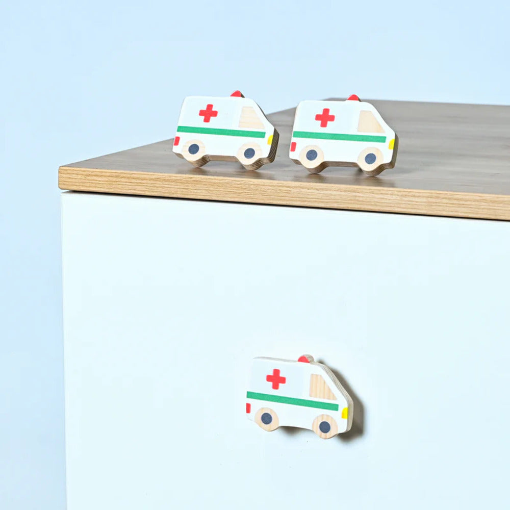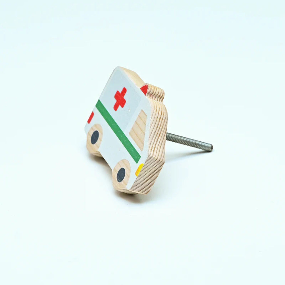 Design: Digitally printed pastel Ambulance Knob for drawers, cabinets, or wardrobe doors.