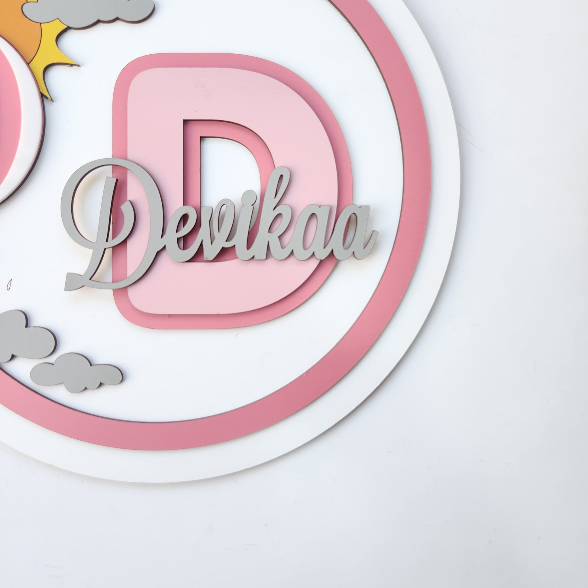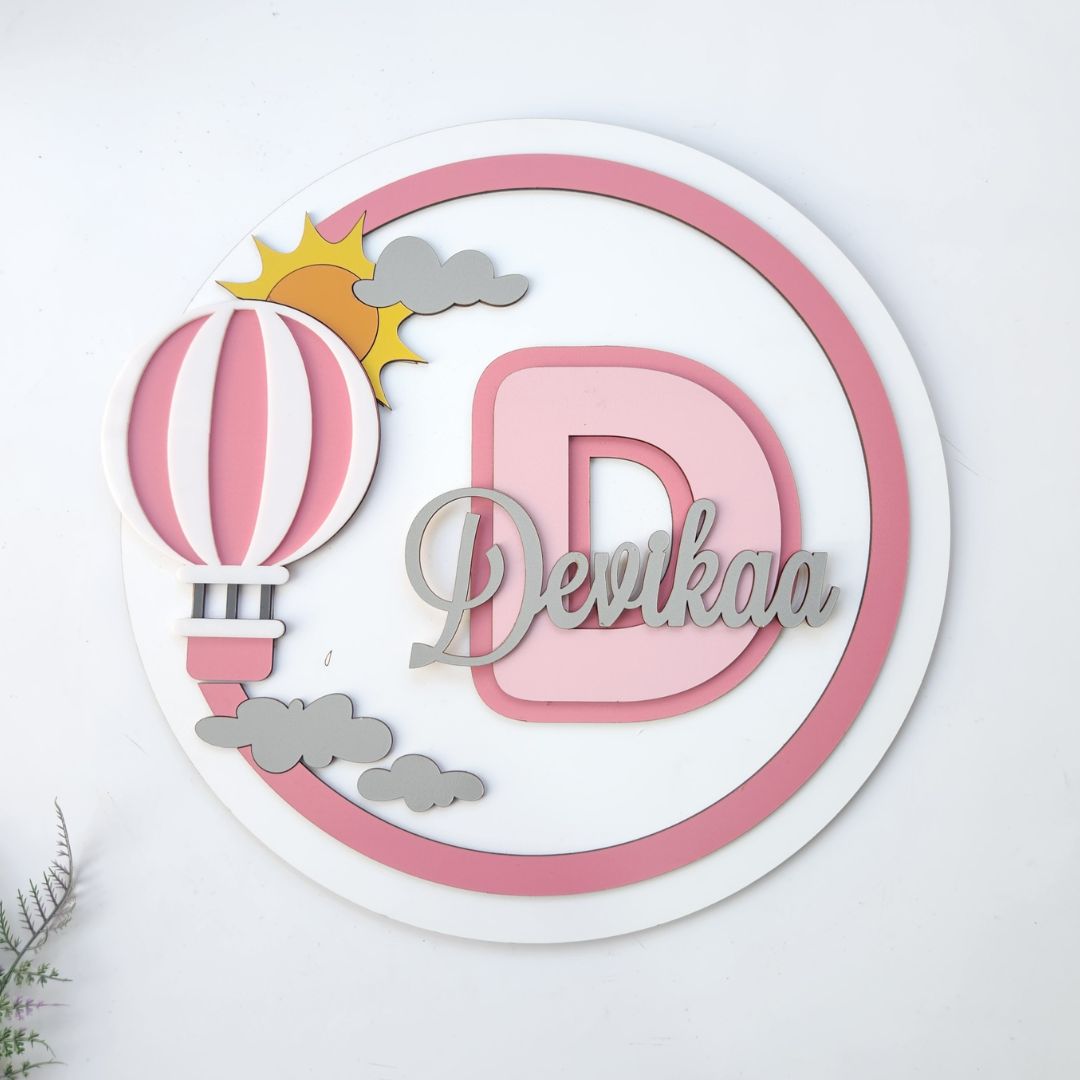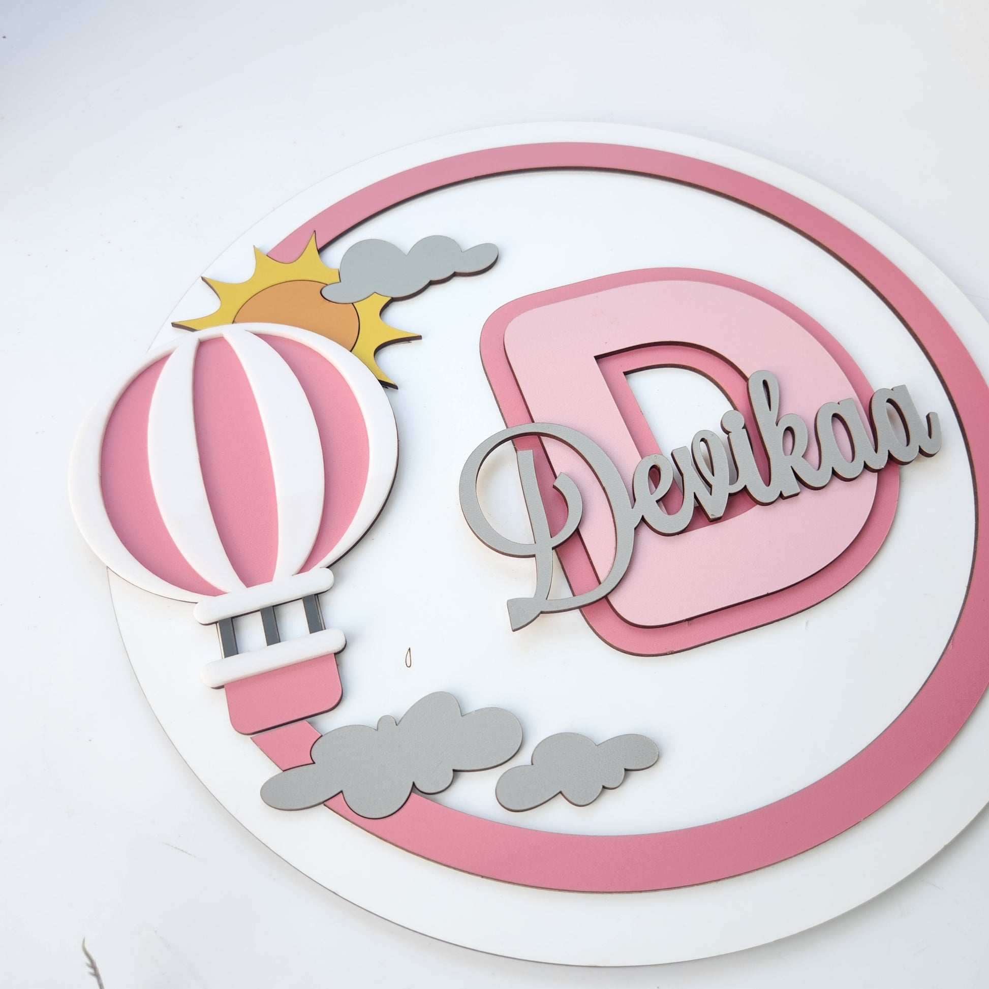 HOT AIR BALLOON THEME NAME SIGN - PINK