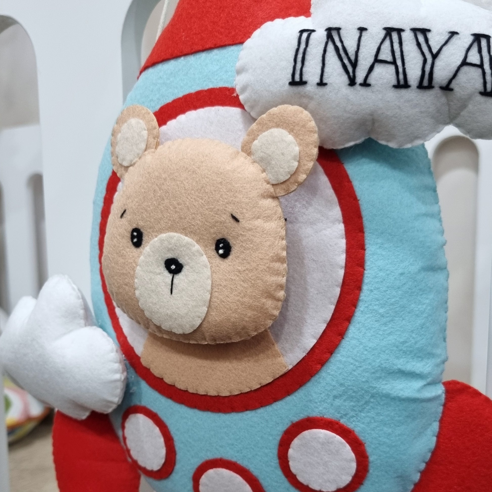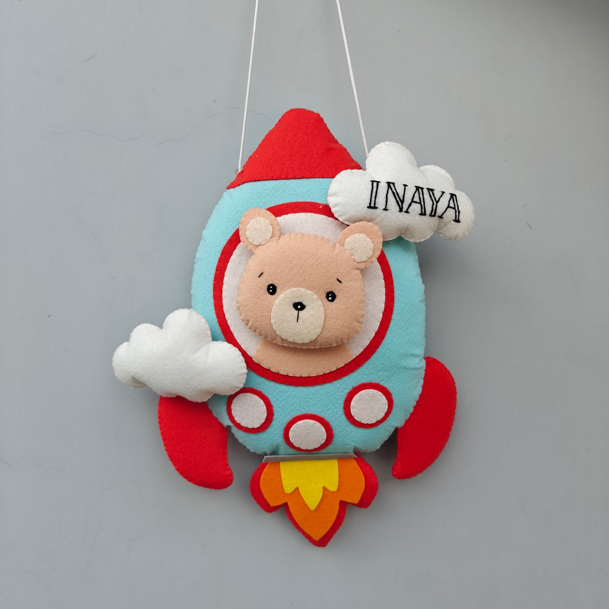 Where Fun Meets Adventure! Explore our charming felt wall hangings crafted in the shape of rockets, featuring adorable teddy astronauts, perfect for adding a touch of whimsy to kids' rooms, nurseries, and above cots.